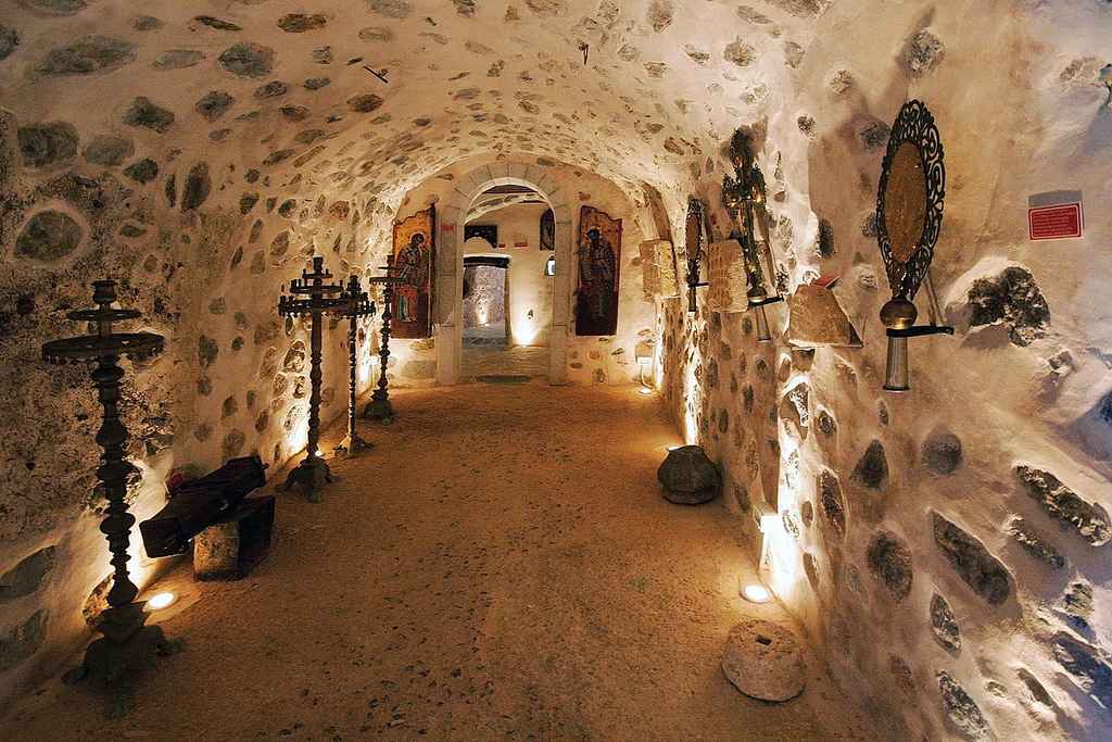 Our first stop of the day will be the historical monastery of Panagia Kera or Kardiotissa which is located just before the village of Kera. The monastery is dedicated to Virgin Mary and serves as a nunnery nowadays. As many places on the island, the monastery holds a myth: The icon of Kyra Kardiotissa was stolen three times by the Turks but every time the icon returned to the monastery. The third time, to avoid losing it again, they tied it to a marble column with a thick chain. Upon your visit, you can see both the column and the chain. The frescoes and the icons of the monastery date back to the 14th century.